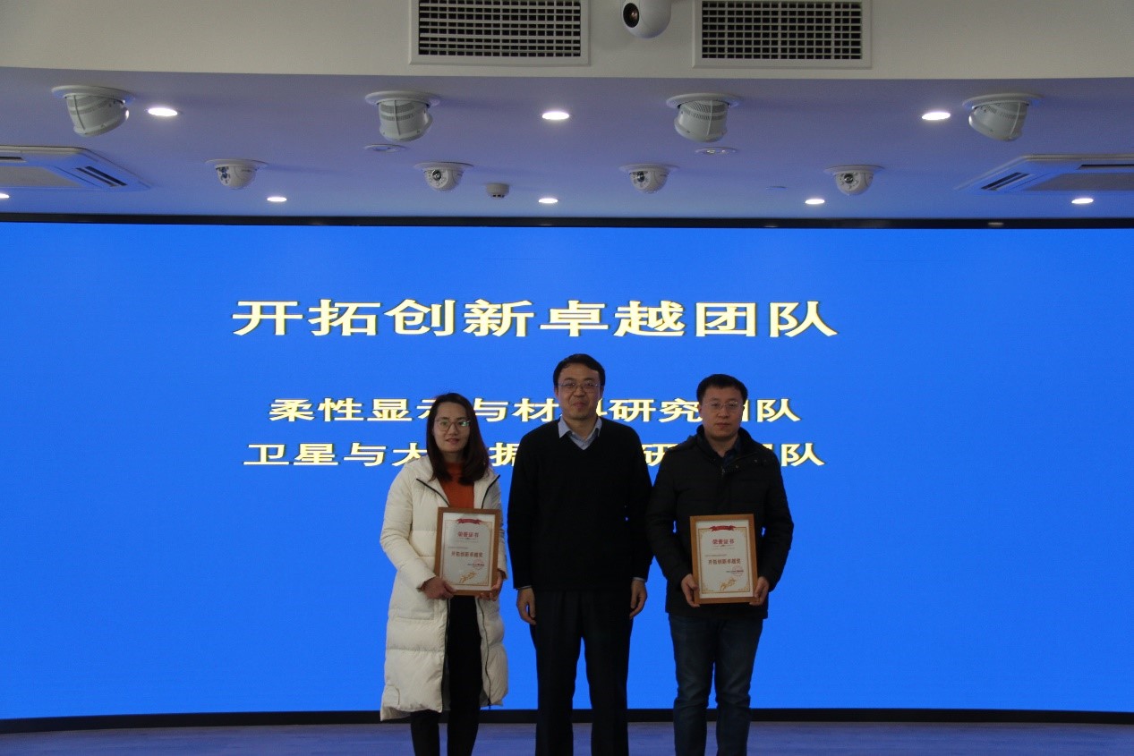 关于表彰2020年度先进集体和先进个人的决定》,在喜庆的音乐声中,潘光、周军、盛其杰、王涛、程翔等对受表彰集体及个人颁发荣誉证书。获奖代表庞维健、孙旭分别上台发表感言。