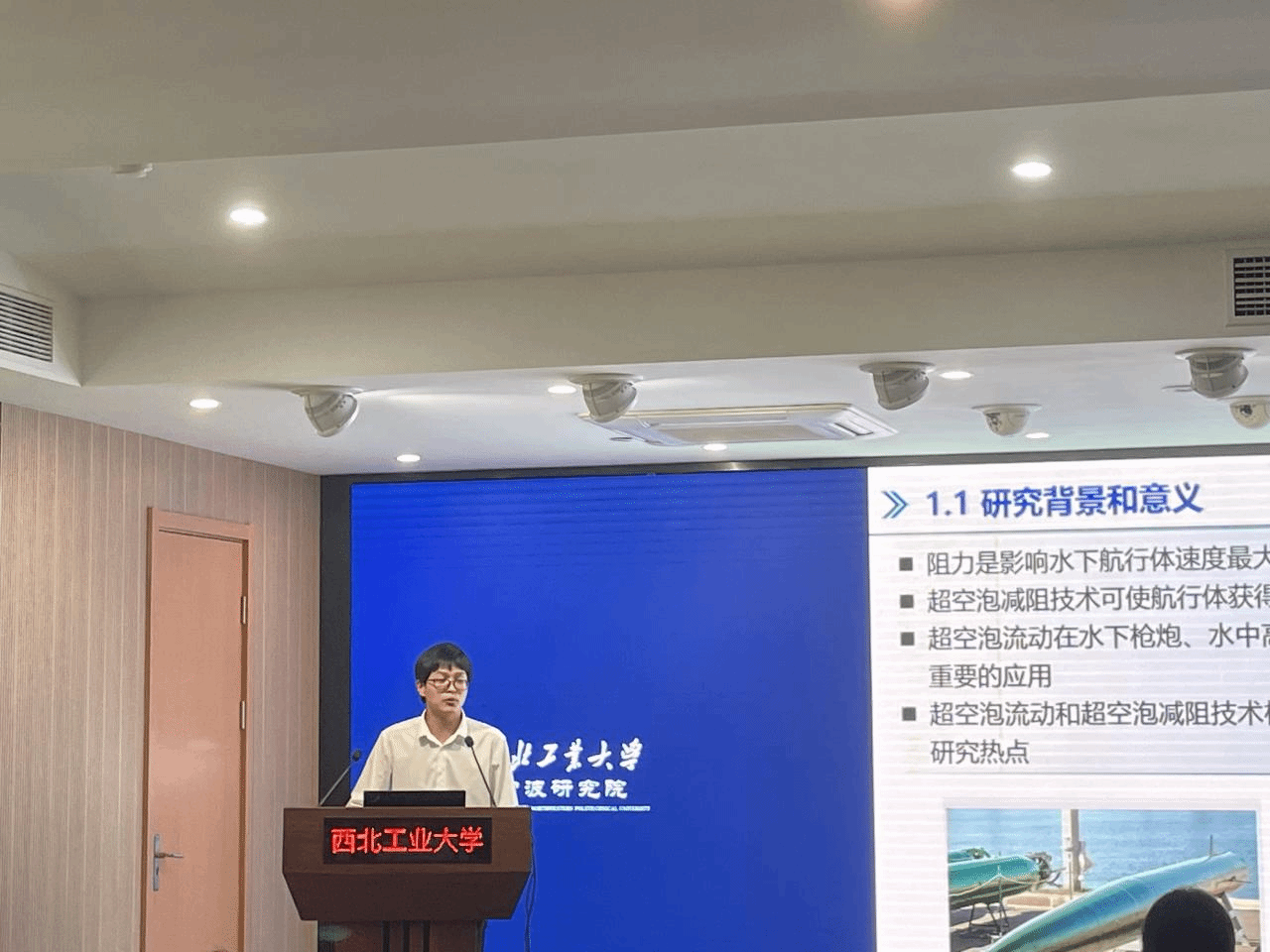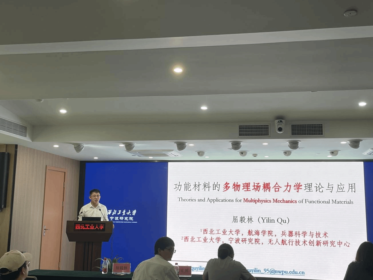 讲师屈毅林做了《功能材料的多物理场耦合力学理论与应用》的报告,在半导体的虚功原理、半导体热力学自洽的本构方程方面与学生展开深入探讨。周东辉、裴毓两位博士后分别做了《航行体跨海空界面多相流动特性研究》和《深远海隐蔽式自主俘能-柔性储能一体化能源自补给系统研究》的报告,对仿蝠鲼出水特性及储能技术进行了详细解说。本场报告会拓展参会人员技术创新思路,碰撞出技术创新火花,会后在座的研究生们表示干货满满,受益良多。