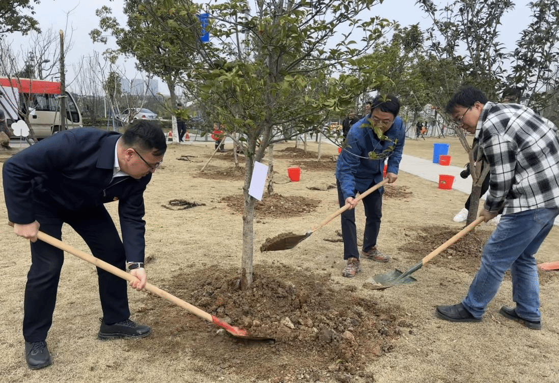 2024年3月12日上午,宁波高新区管委会组织了年度植树活动,旨在倡导绿色环保理念,共同建设美丽家园。在智造港西侧防护林,管委会主任徐云同志与永新光学联席董事长毛磊、西工大宁波院院长盛其杰一起栽树,共铸美丽生态。